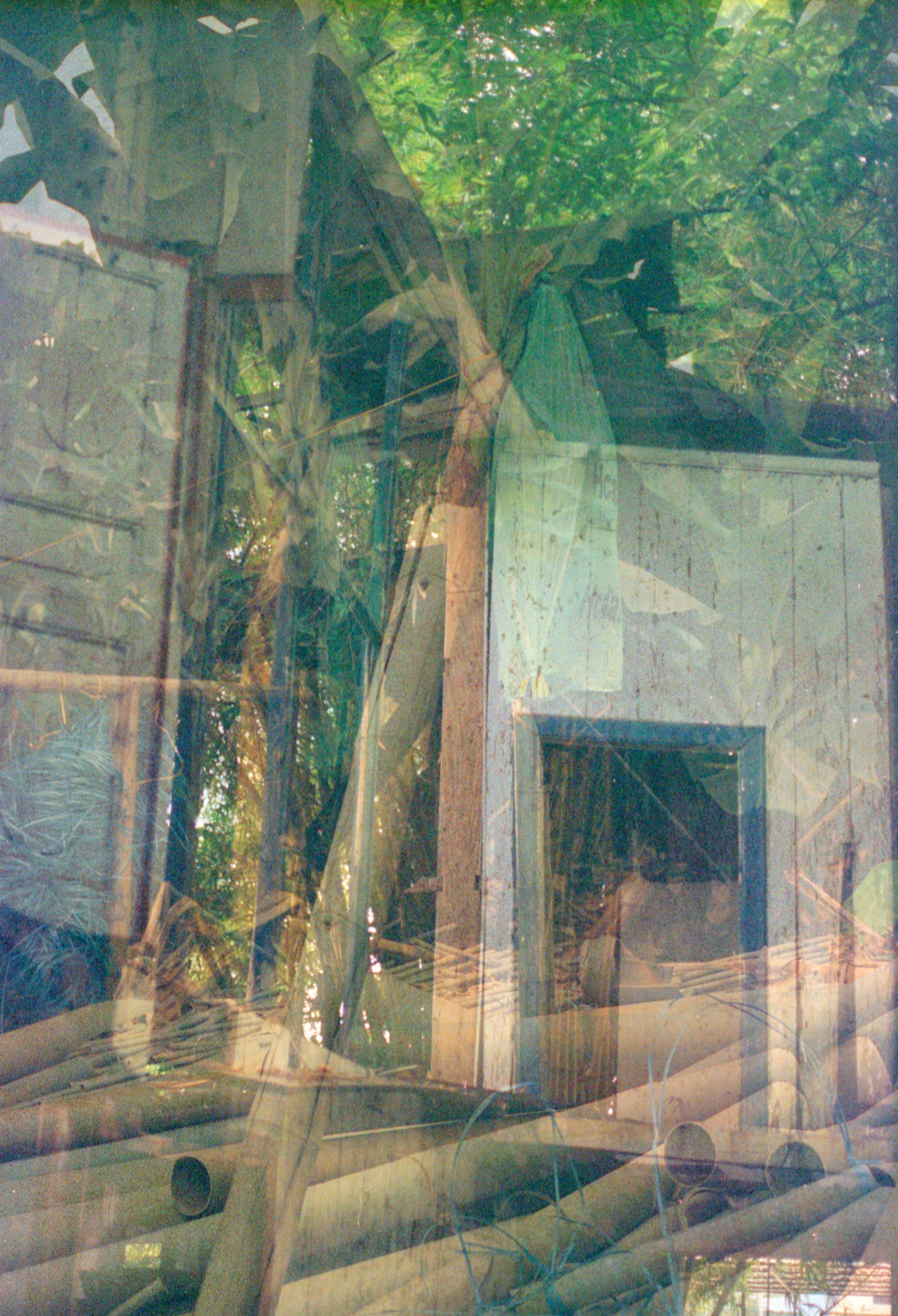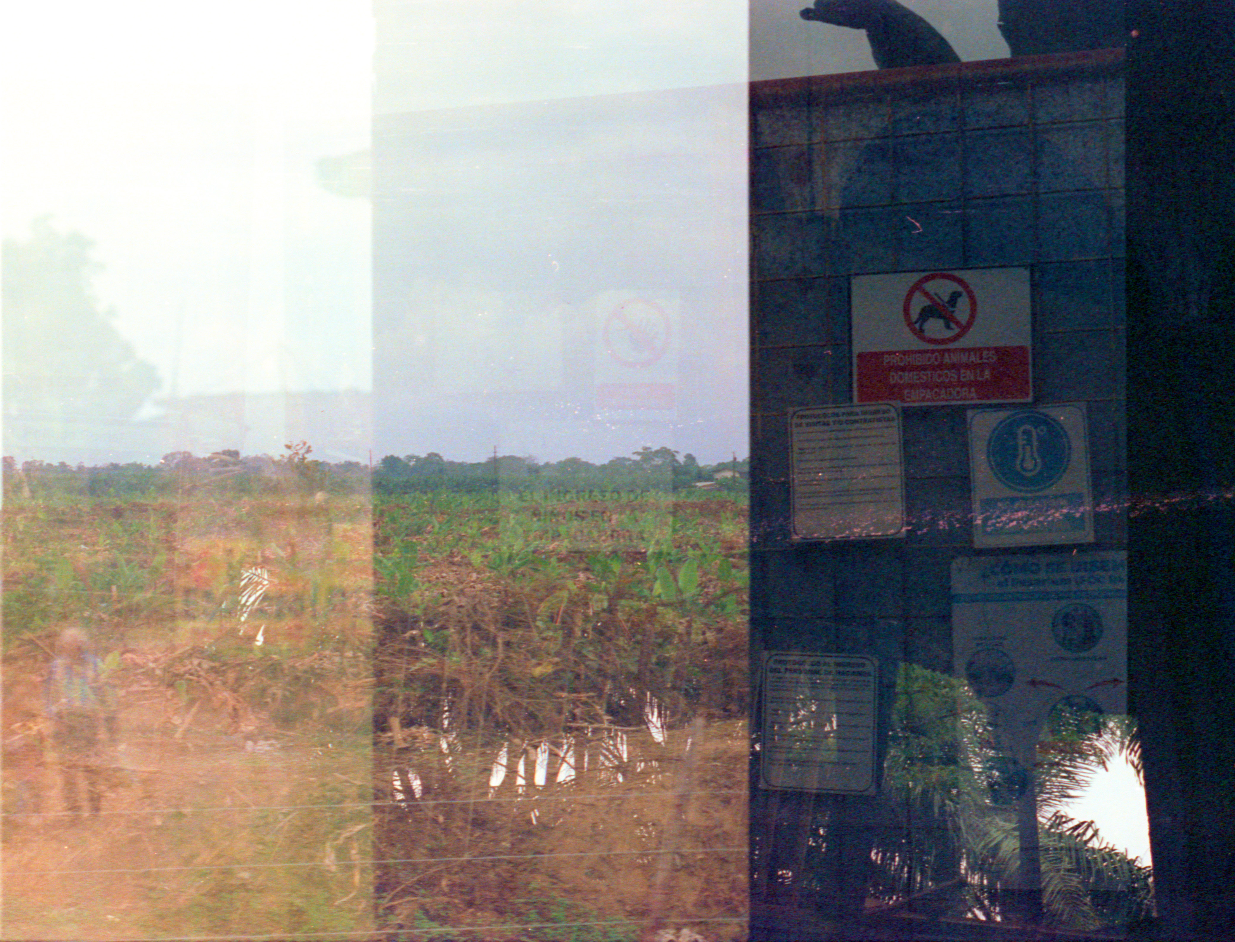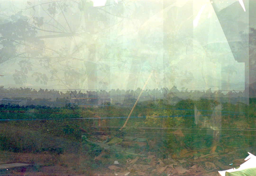 below is a photo series of 35mm multiple-exposure photographs reflecting on the memory and historical phantoms of precolonization in the ecuadorian coastal countryside